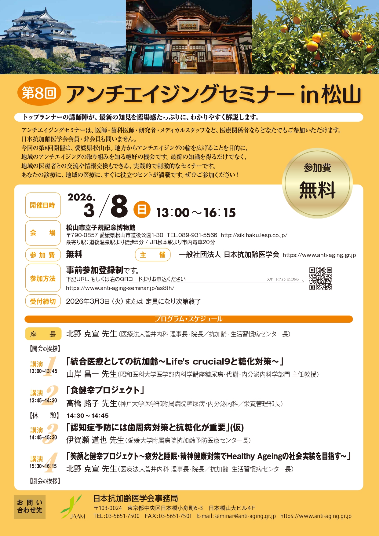 第8回 アンチエイジングセミナー in 松山 開催のご案内